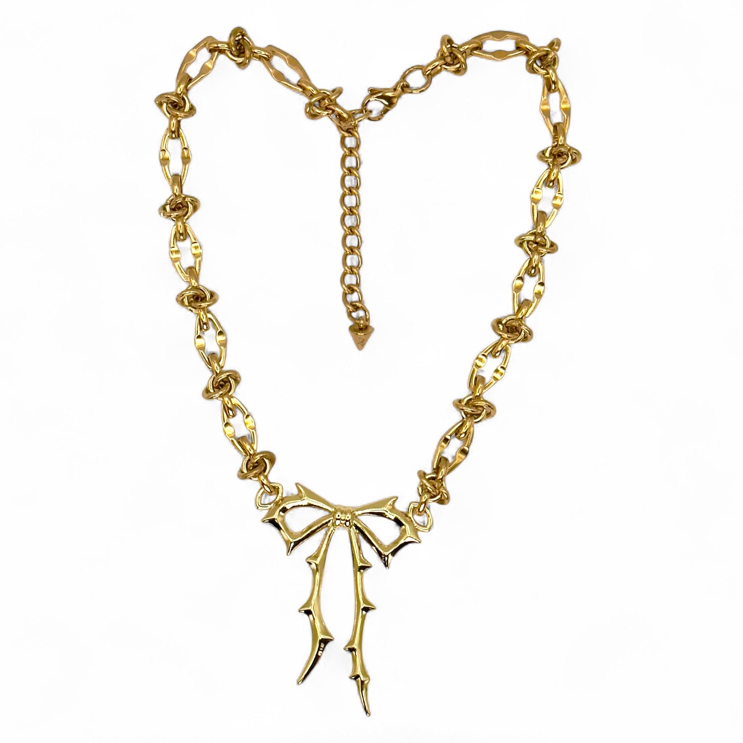 The Carrie Bow Necklace is a timeless yet edgy staple—made for the woman who’s equal parts graceful and unstoppable. Layer it with other gold or silver pieces, or let it shine solo as your signature piece.