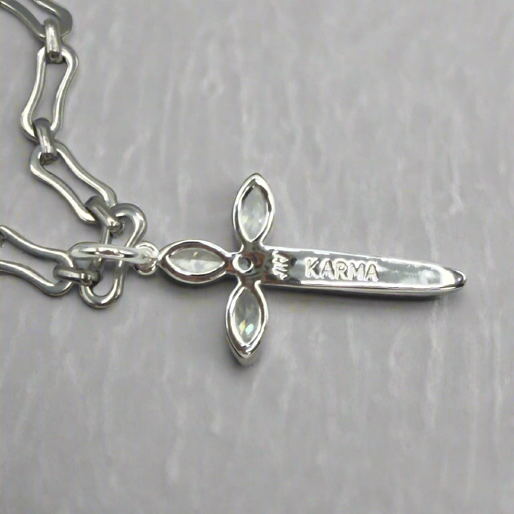 The 21-inch stainless steel chain is fully adjustable, letting you wear it as a classic necklace, lariat, choker, or even wrap it as a bracelet. However you wear it, the Karma Dagger reminds you: style speaks louder when it cuts deep.