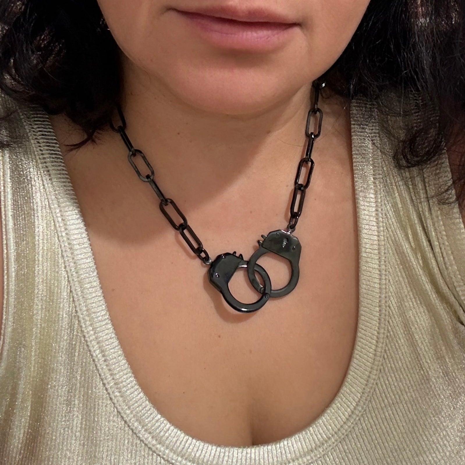 Wear it as a couple’s necklace, or separate it into two 9-inch pieces to transform it into matching bracelets, anklets, purse charms, or even a pant loop chain. And yes—those handcuffs actually work. Whether you're styling for day, night, or something more adventurous, the Love Bond Chain brings power and play to any look.