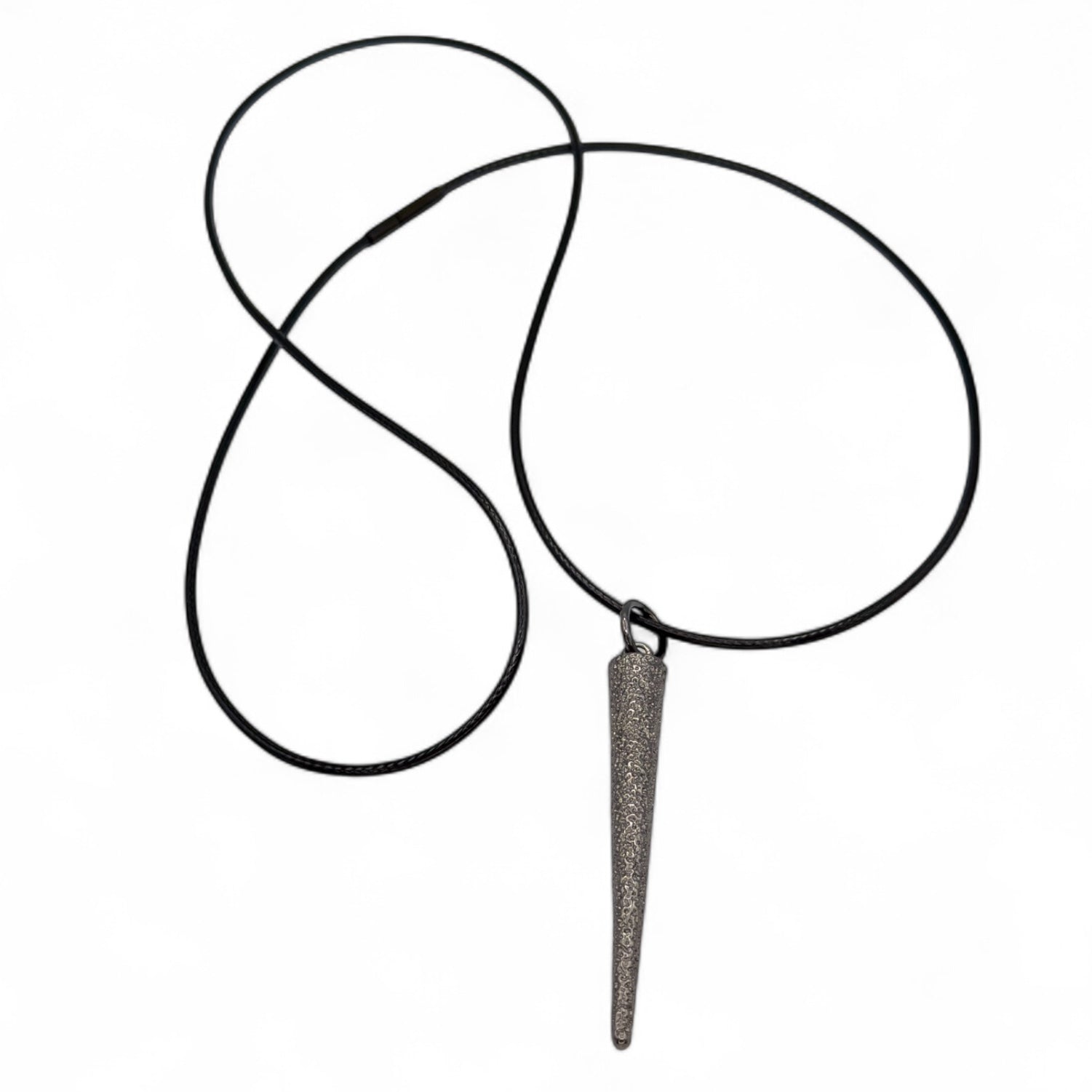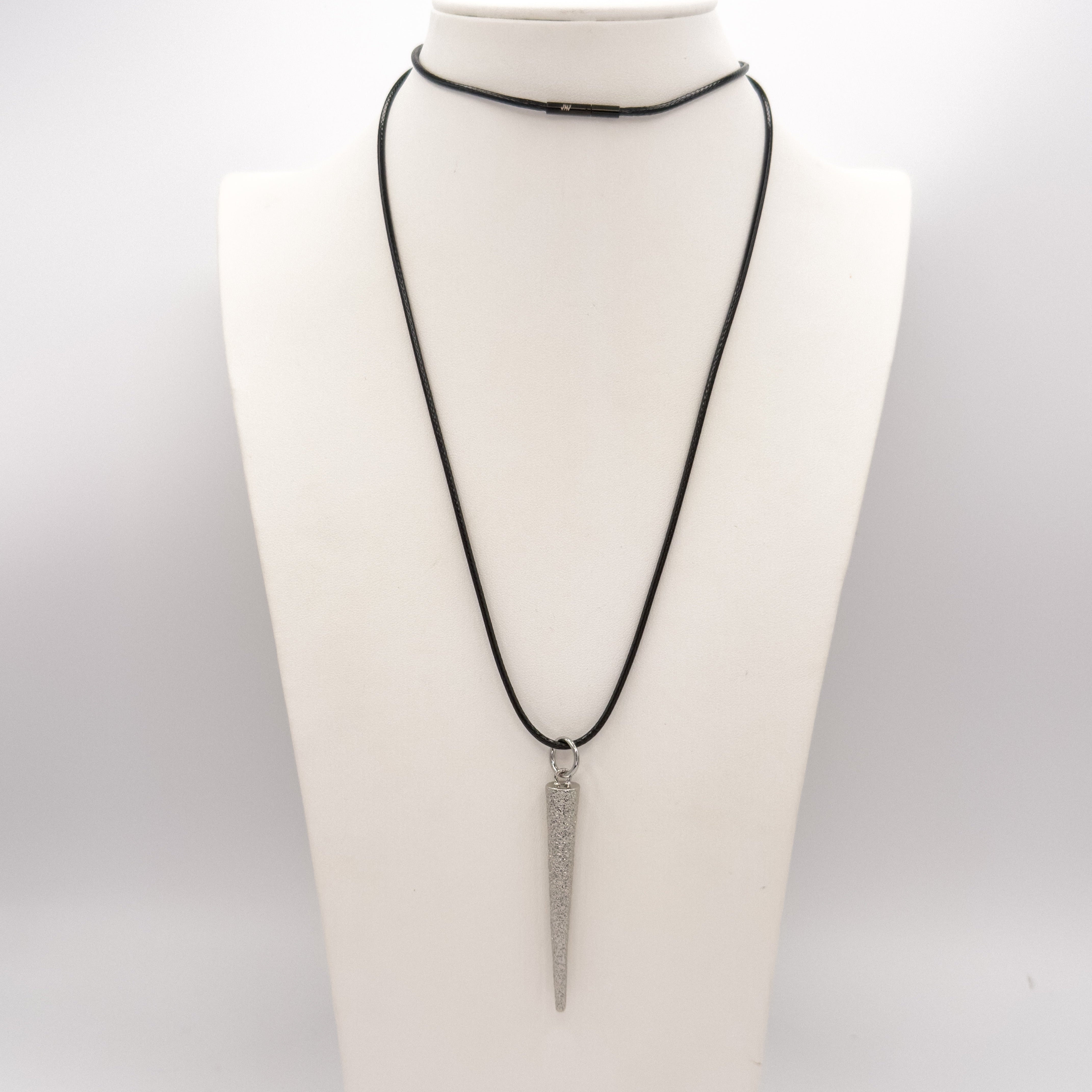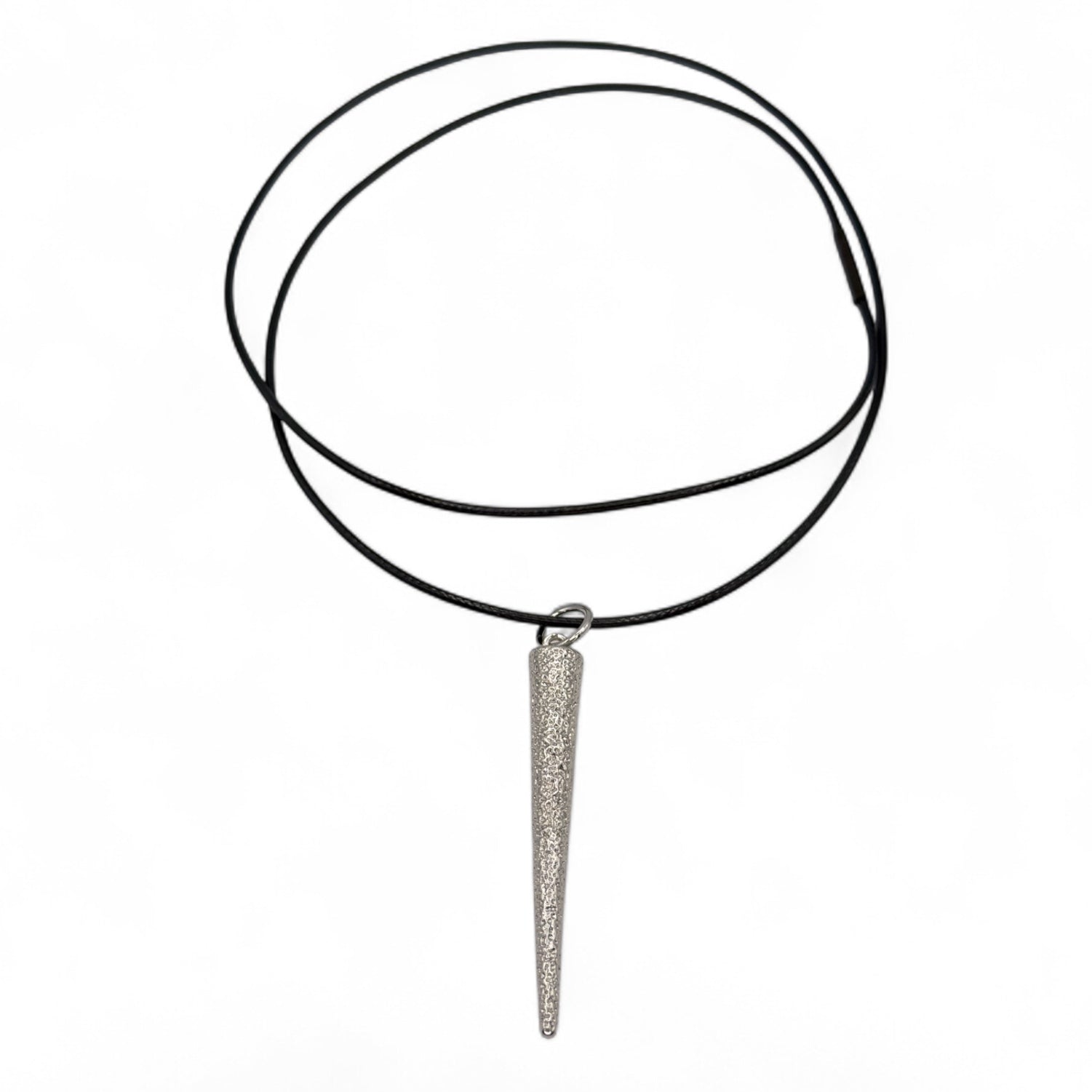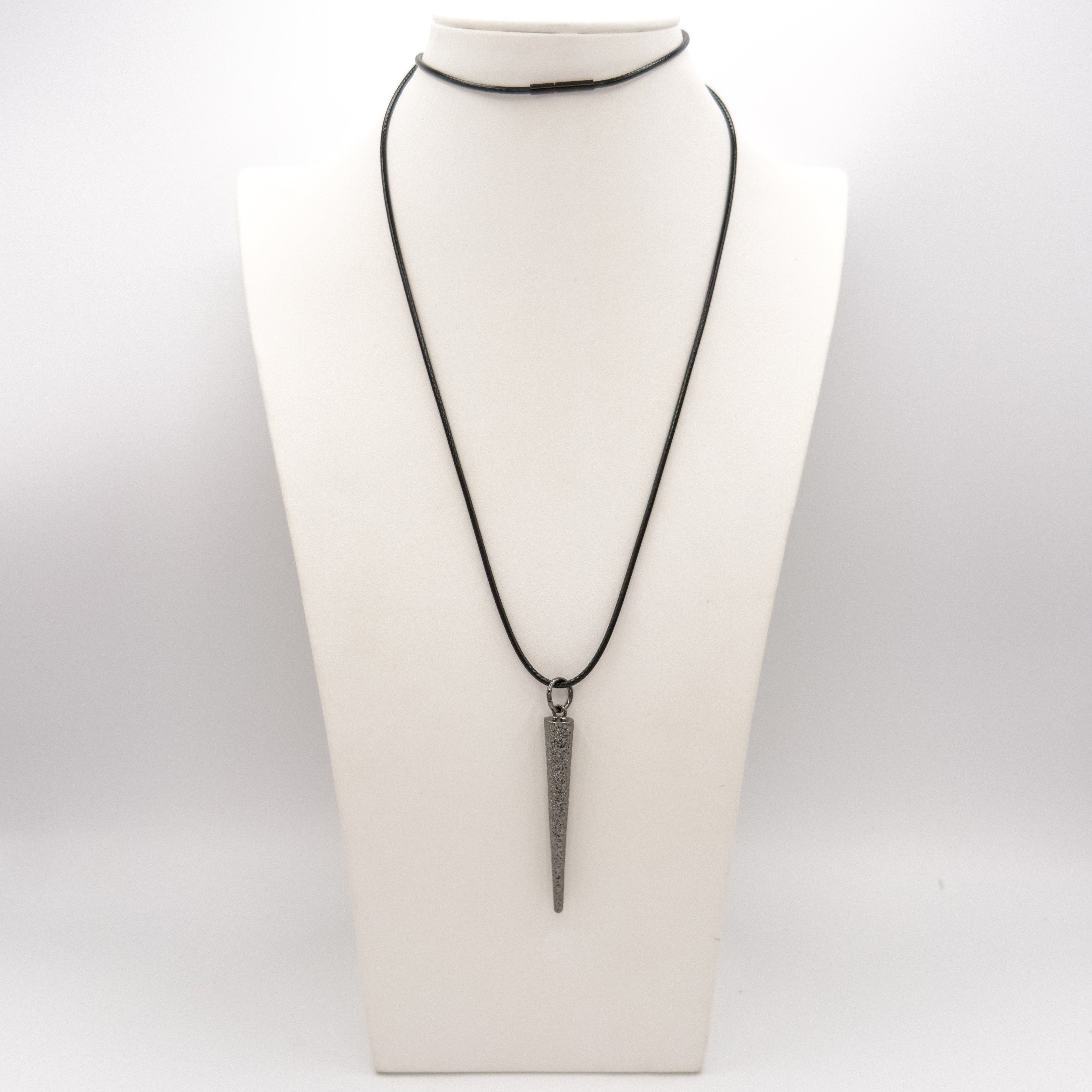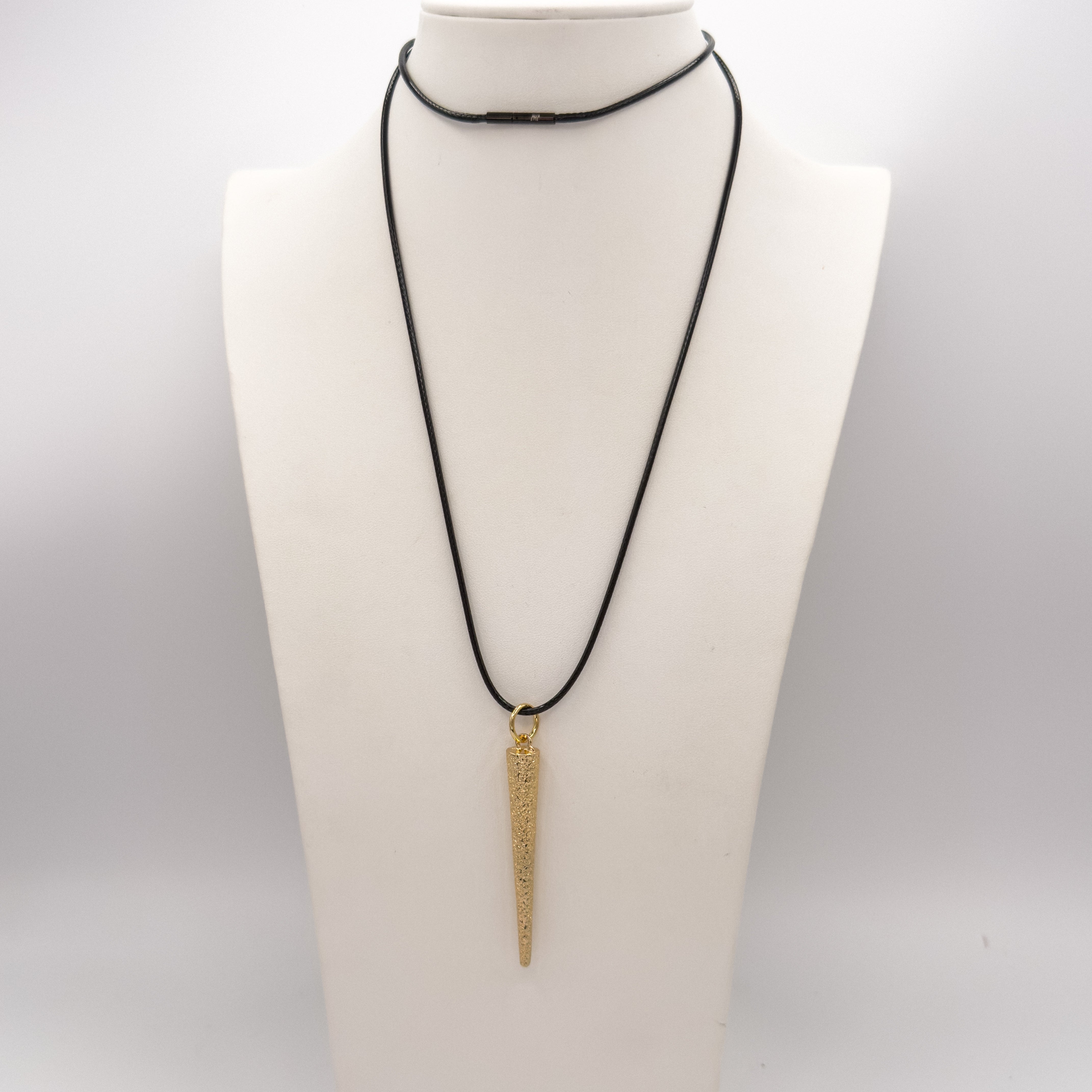 The Benson Necklace embodies the modern edge of Jagged Halo—bold, versatile, and unapologetically sleek. A textured gold-filled spike pendant hangs from a supple faux-leather cord, creating the perfect balance of rebellion and refinement. Measuring 32 inches long, it can be styled as a single statement strand, wrapped twice for a layered effect, or tripled into a choker that radiates confidence. The 3 nch pendant draws the eye with its shimmering, sculptural finish, adding instant attitude to any look.