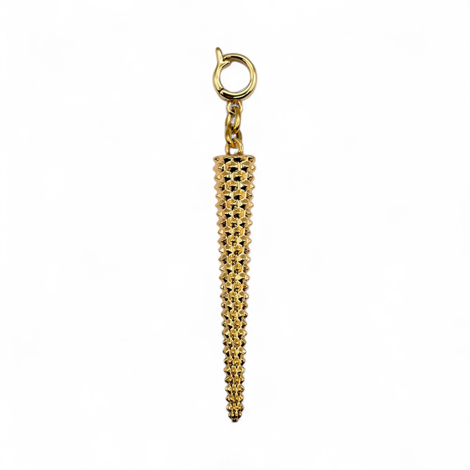 Crafted with precision and edge, the Artemis Pendant features a textured spike that reflects light from every angle. Made from gold-filled metal (or available in silver tone), it’s built for everyday armor — tarnish-resistant and sleek. The openable clasp allows effortless attachment to any chain, making it your go-to charm for mixing and layering with intention.