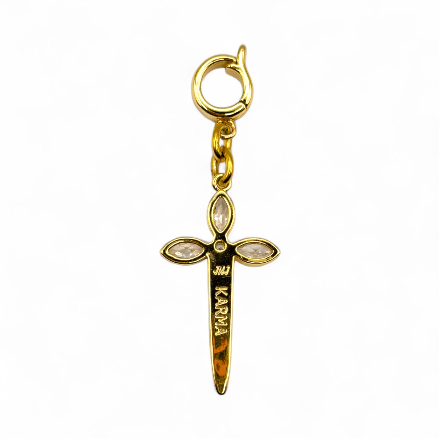 Hand-crafted with precision, this pendant features a gold-filled body for long-lasting shine and sparkling cubic zirconia accents that catch the light with every move. The openable clasp makes it effortlessly versatile — it attaches to any chain, allowing you to switch up your style in seconds. On the back, “KARMA” is engraved as a quiet declaration of power and intention.
