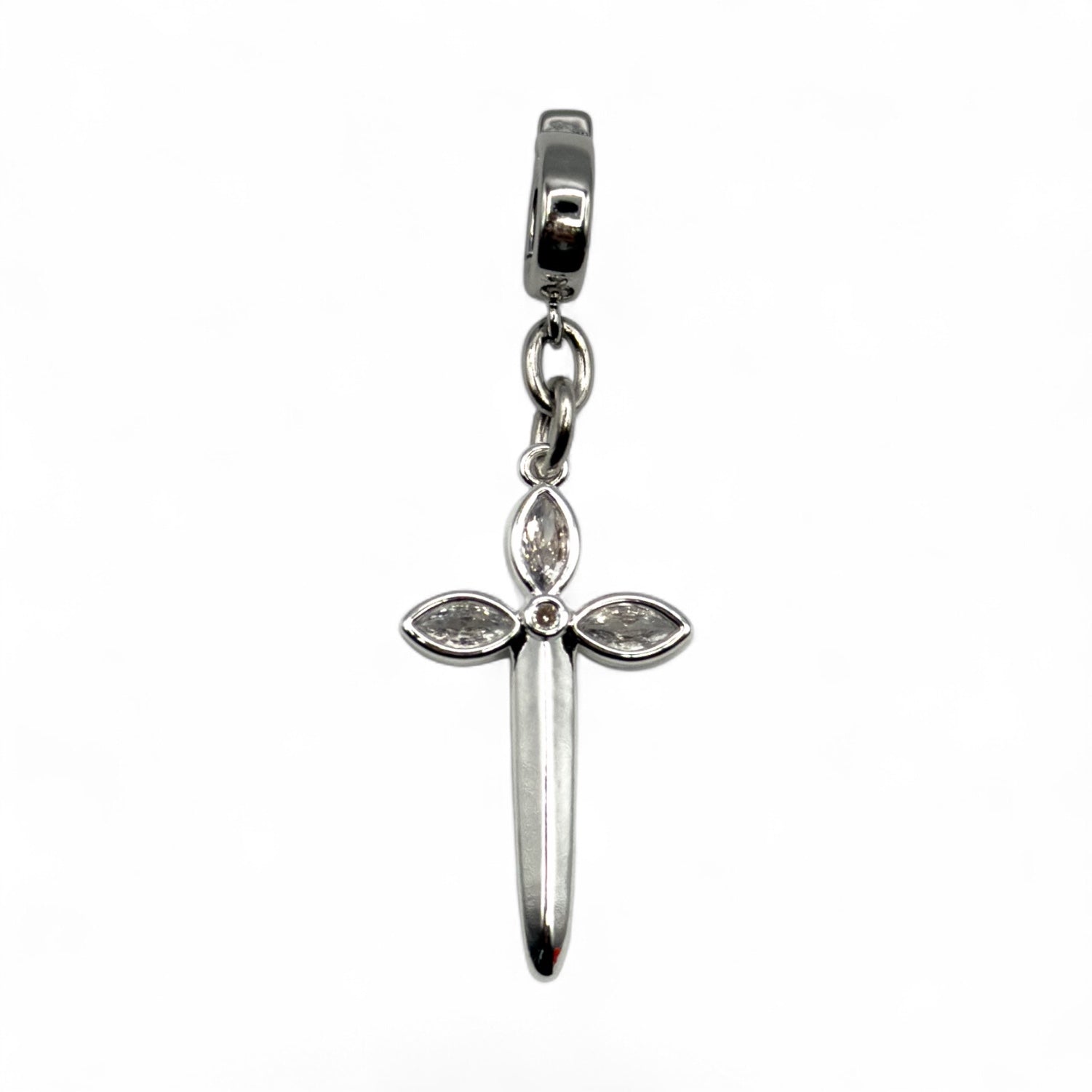 What goes around comes around — and this pendant makes sure it comes back golden. The Karma Pendant embodies balance, protection, and divine justice. Its dagger-like silhouette symbolizes strength, while the marquise-cut CZ stones form a radiant cross — a reminder that energy, like beauty, always finds its way back to you.