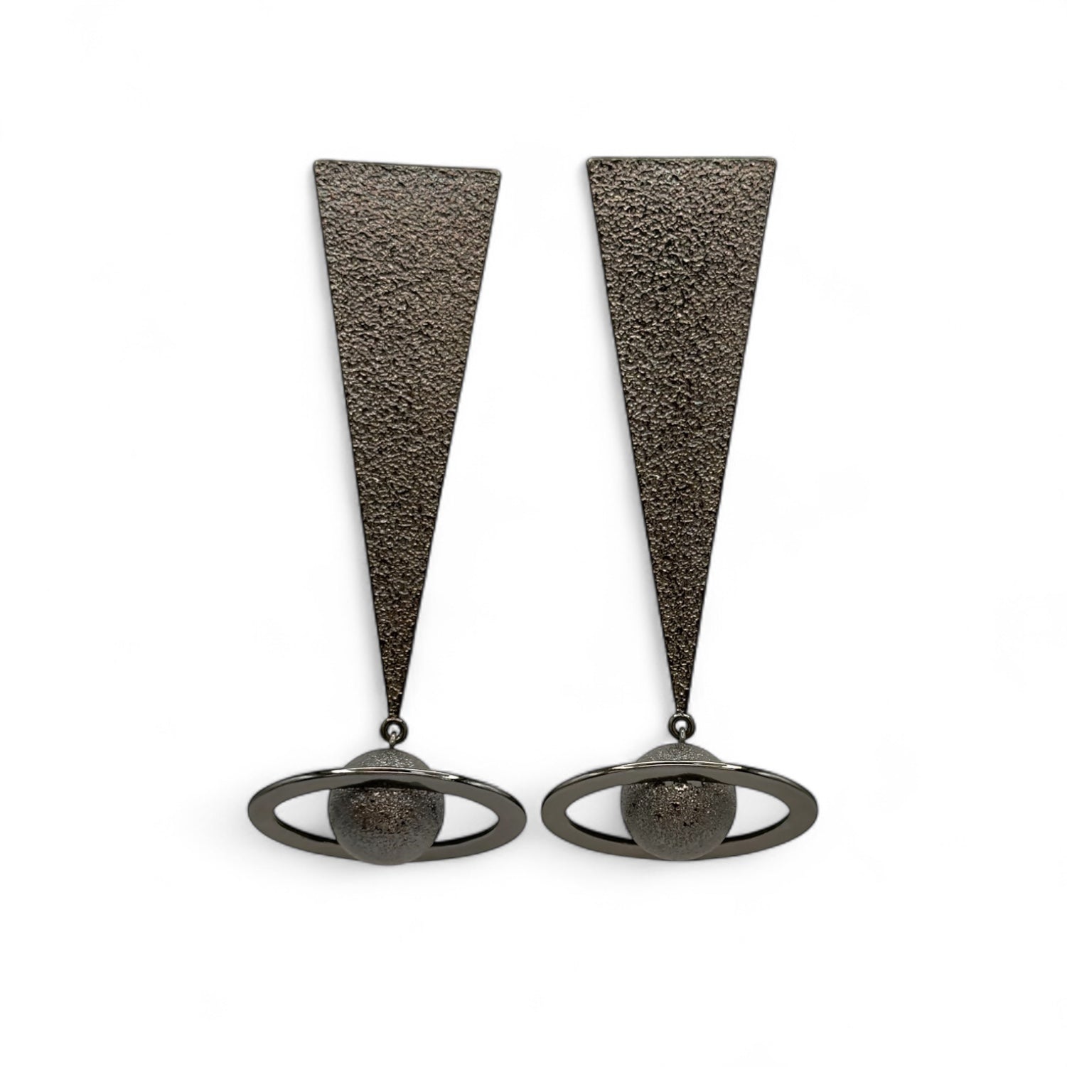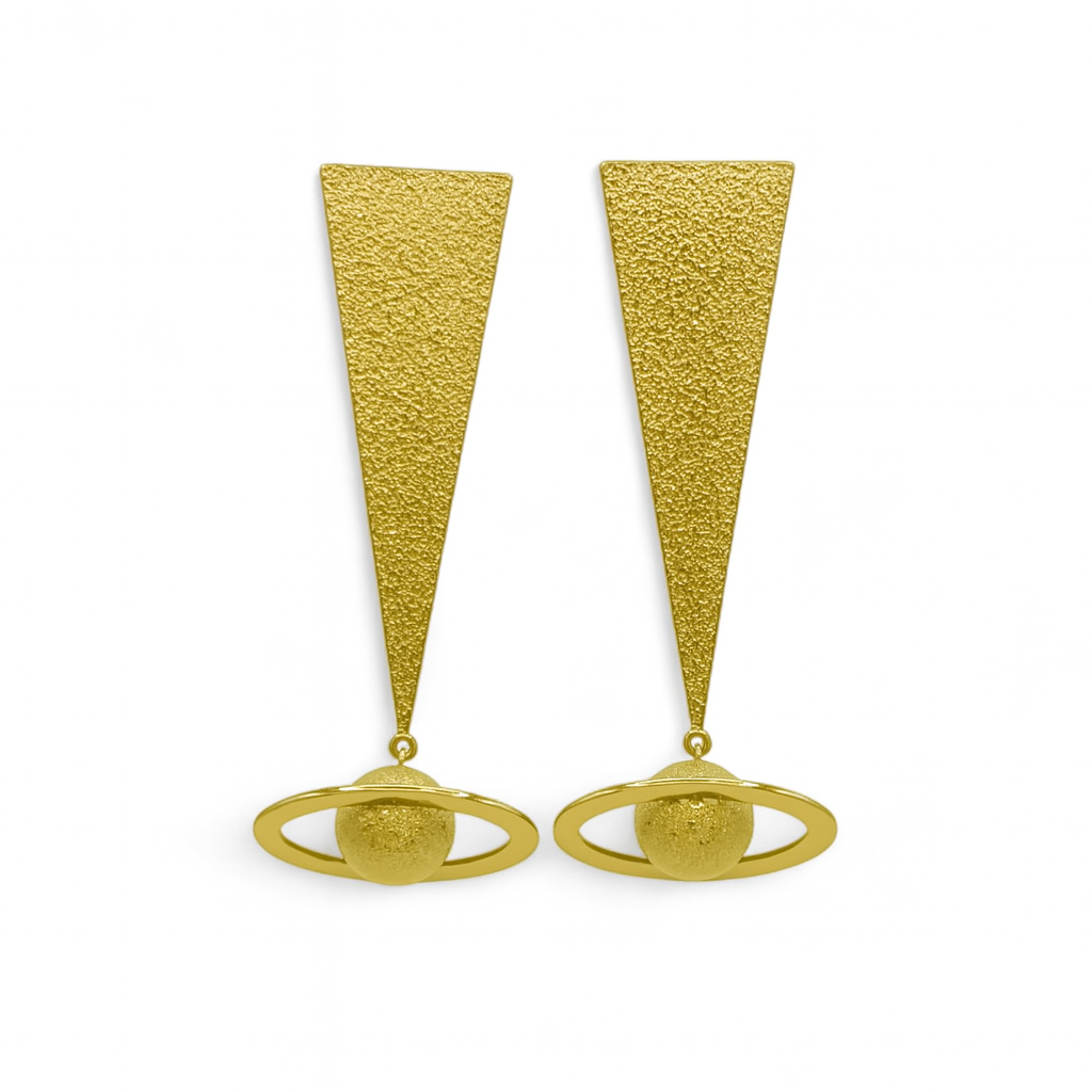 The Saturn Drop Earrings are a sculptural take on strength and style. Featuring a 3D gold-filled Saturn pendant suspended from a sleek stud, this pair channels structured energy with a modern edge. Lightweight and easy to wear, they bring bold presence without the weight—perfect for everyday empowerment.